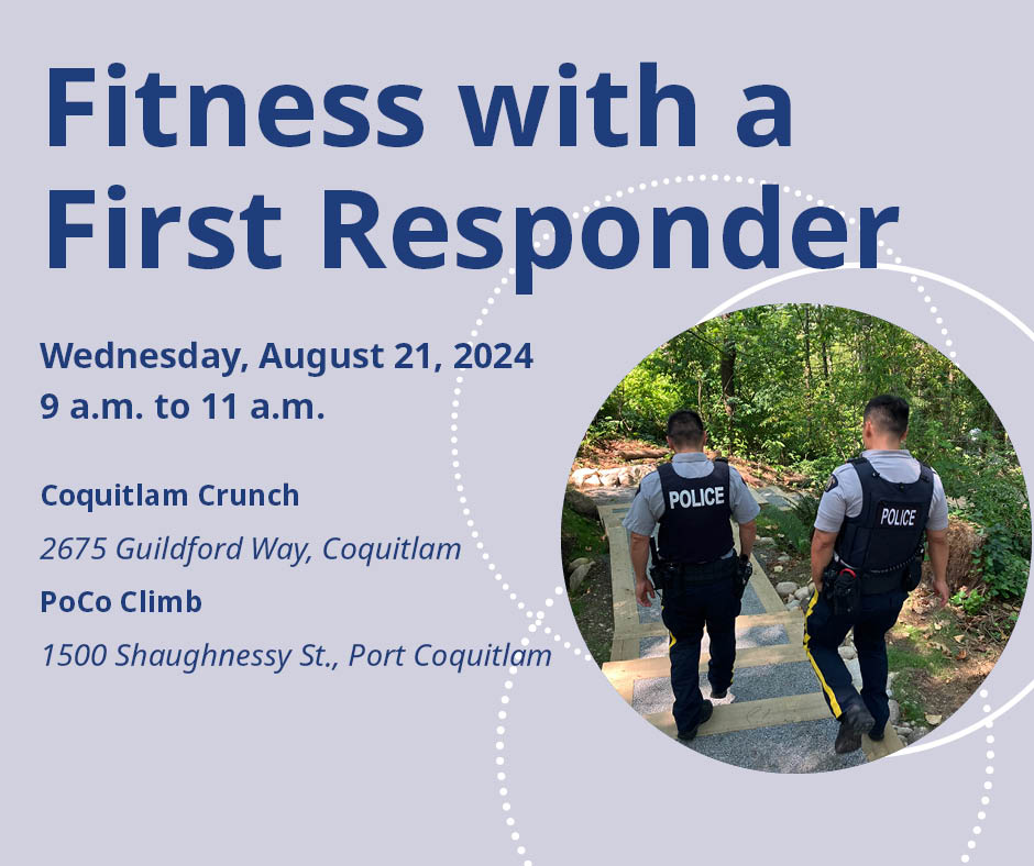 Coquitlam RCMP is inviting the public to Fitness with a First Responder on Wednesday, August 21, 2024 in Coquitlam and Port Coquitlam.