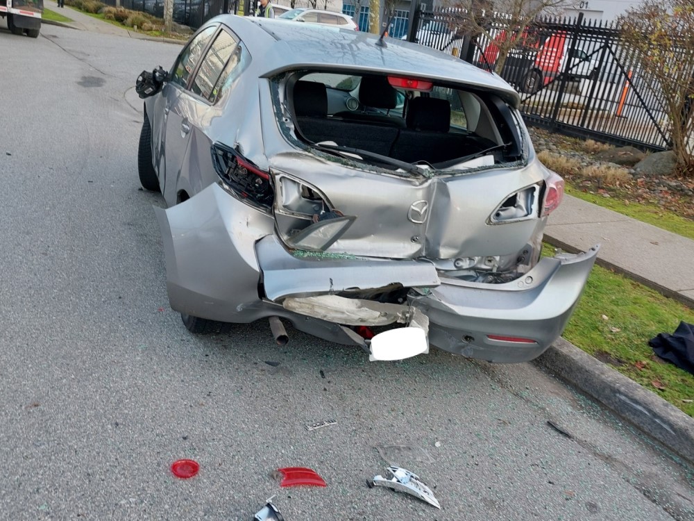 The incident began on December 9, 2024, just before 3:00 p.m., when BC Highway Patrol received a report of a semi-trailer driving erratically on the Mary Hill Bypass, Port Coquitlam. Before police arrived, the semi-trailer hit four parked vehicles on Industrial Avenue, Port Coquitlam.