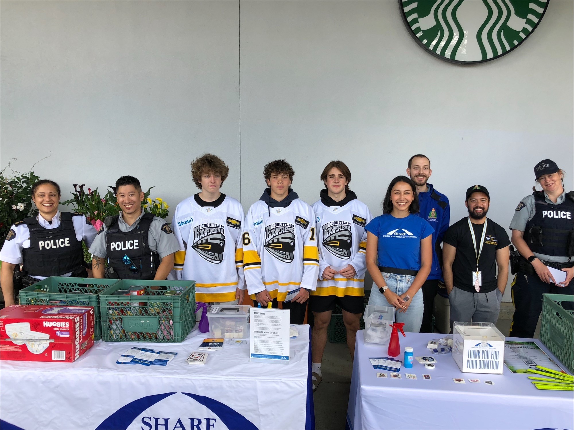 Coquitlam RCMP officers, Community Policing Volunteers, Metro Vancouver Transit Police, Coquitlam Express and the SHARE society attended Safeway and Save-on-Foods in Coquitlam and Port Coquitlam on July 25, 2024 to collect donations. The event ran from 2:00 p.m. to 6:00 p.m. and saw hundreds of attendees donate goods and money for the SHARE Society.
