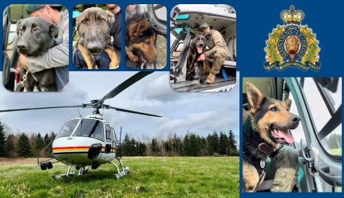 Le 9 avril 2025, dans le cadre d’un partenariat avec le Service de l’air de la GRC en Colombie-Britannique, Magic et quelques-uns de ses collègues des détachements de Campbell River, de Duncan et de Nanaimo ont participé à une formation dans les airs au-dessus de la vallée du Comox.