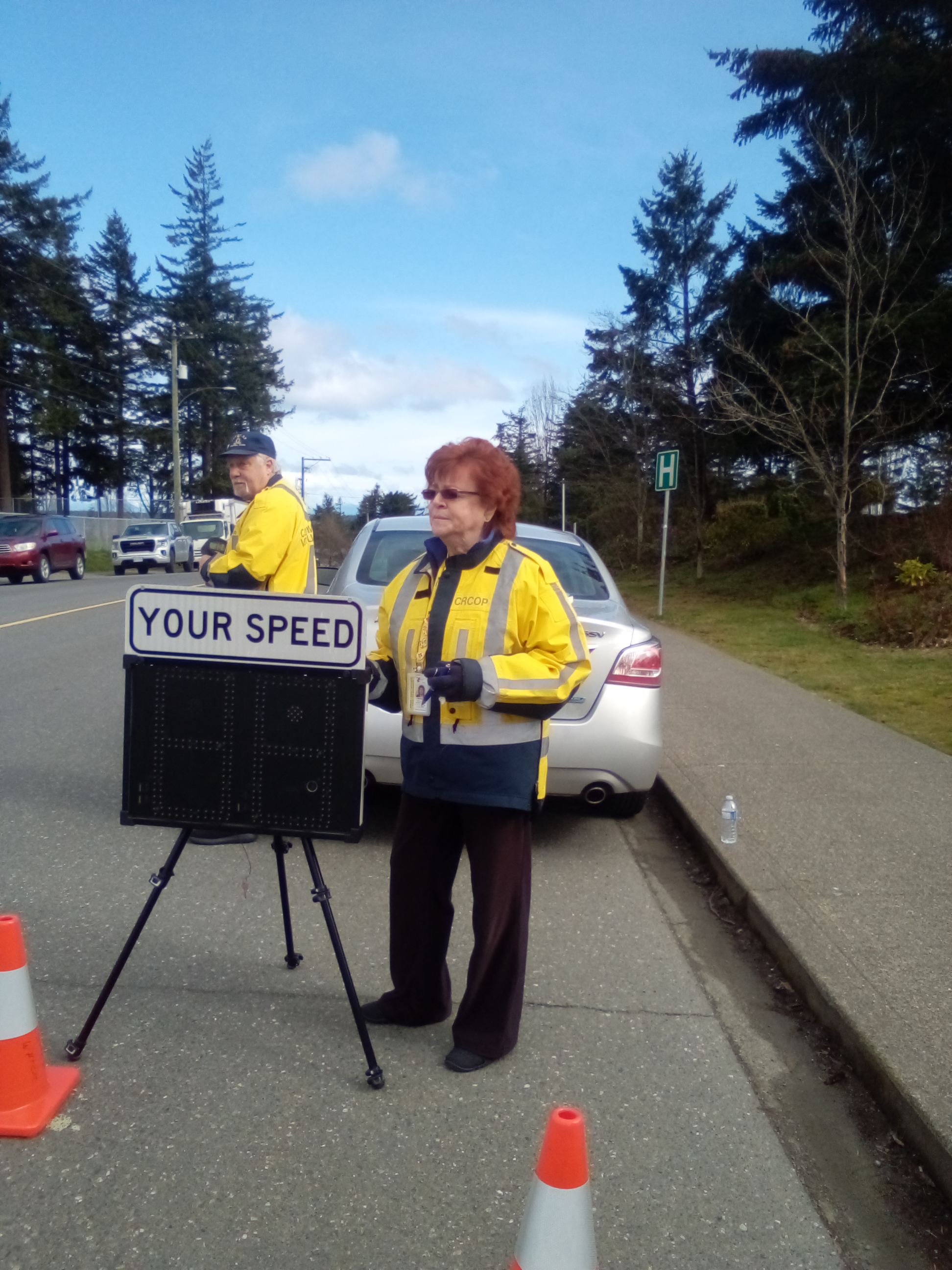 (COP members Jody McConnan and Gord Smith conducting Traffic Safety Watch)