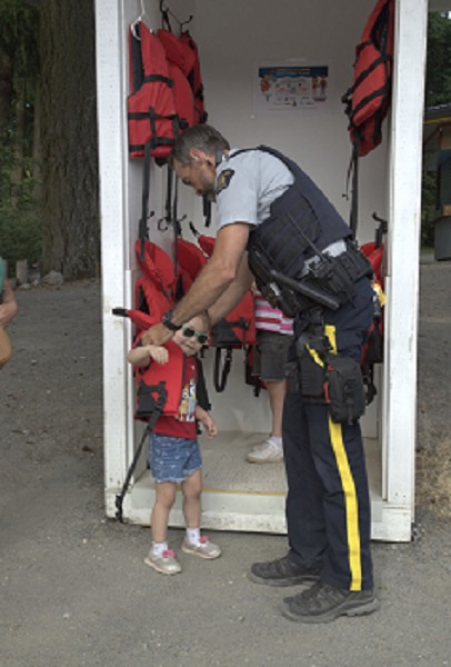 While working as a boat operator for the Upper Fraser Valley Regional Detachment Seasonal Policing Team, Constable Bradley Holditch responded to many drownings in the Cultus Lake area, witnessing the trauma these incidents had on the families and the community at large. While visiting Vancouver Island, Cst. Holditch observed the Kids Don’t Float program ran by the Royal Canadian Marine Search and Rescue, an initiative that provides the public free life jackets to borrow for the day on the water. Constable Holditch immediately knew he wanted to introduce this program in Cultus Lake. Cst. Holditch approached local government agencies and businesses for assistance to get the program off the ground.