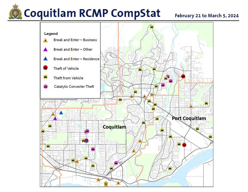 The Coquitlam RCMP urges area residents to call 604-945-1550 to report anything suspicious and to call 9-1-1 to report crime in progress. The information you provide to us, no matter how minor it seems to be, is very valuable and we need your help to keep our community safe. Visit our website for information on joining Coquitlam RCMP's Block Watch.