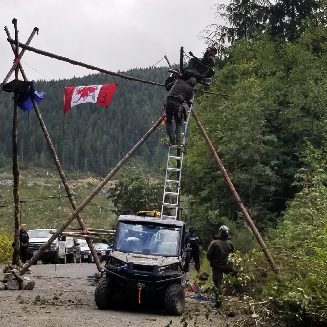 Police enforcement of the BC Supreme Court injunction order in the Fairy Creek Watershed area continued today, on August 30, 2021, with ongoing efforts to remove obstructions and individuals from locking devices or tripod structures.