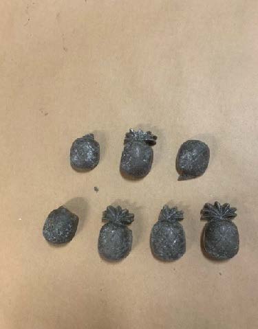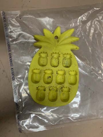 Cliquez ici pour une plus grande photo des drogues illicites en forme d'ananas.