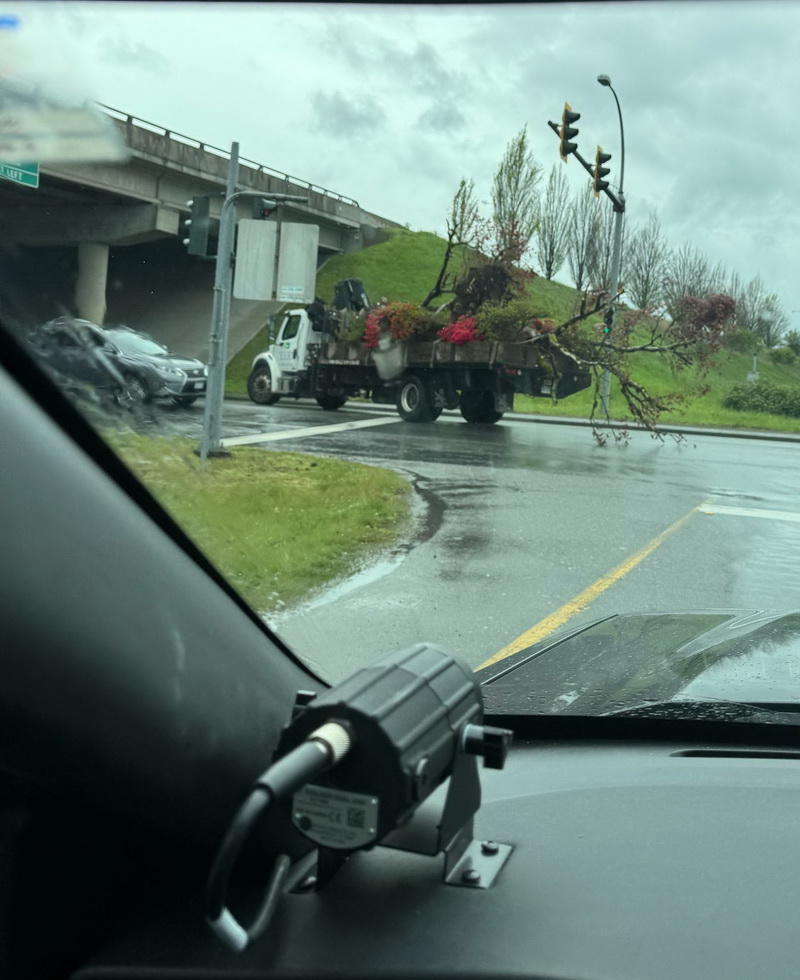 On April 27, 2024 a Richmond RCMP Road Safety Unit (RSU) officer was conducting routine patrols on Highway 91 Westbound when he observed a commercial vehicle with large trees loaded on the flatdeck. The officer pulled behind the vehicle and noted the load did not appear to be secured.