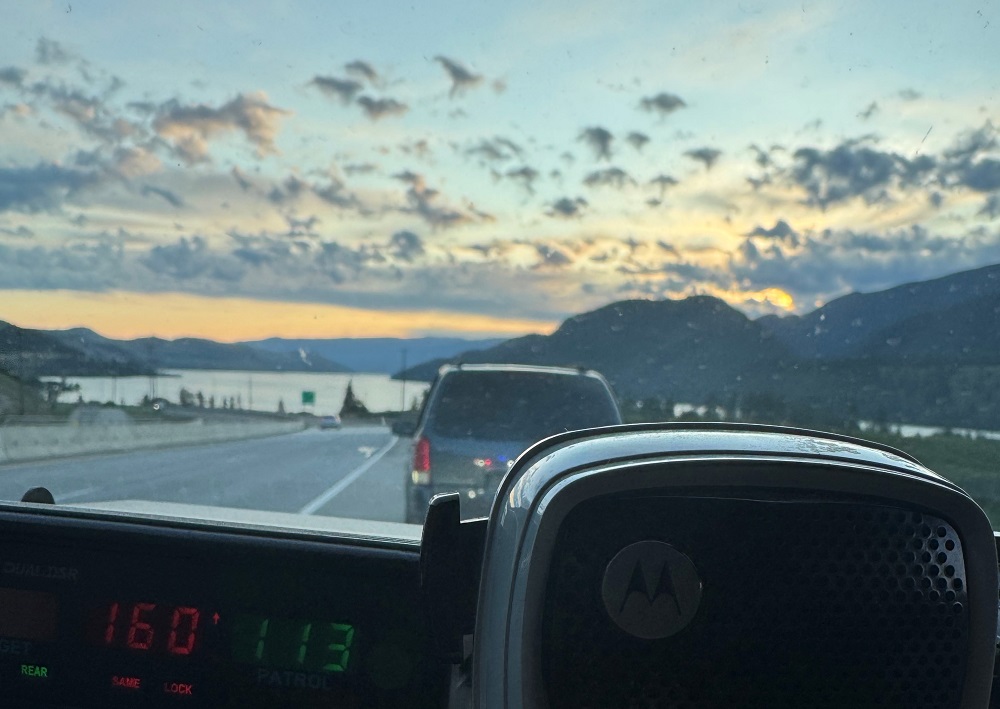 On June 4, 2025, at 4:30 a.m., a minivan sped up behind a police cruiser driving on Highway #97 south of Pelmewash Parkway, Lake Country, BC. The minivan was doing 160 km/h in a 100 zone, and the driver did not have a licence.
