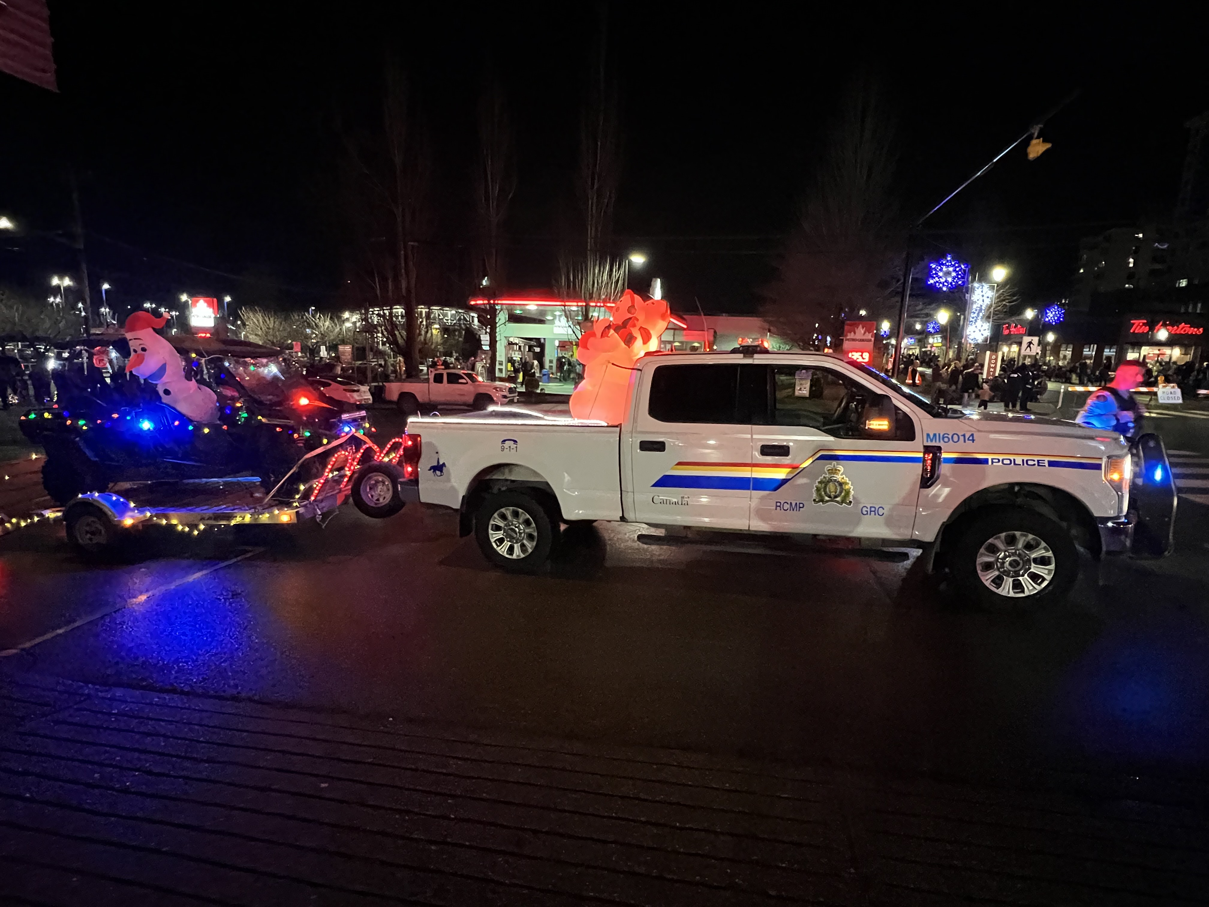 Click here for photo of RCMP truck and trailer decorated with Christmas lights