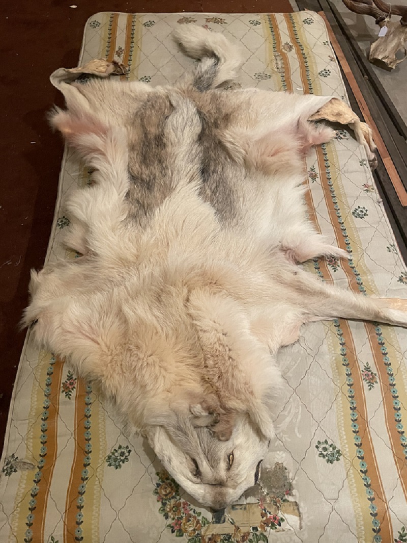 Fort St John RCMP frontline police officers attended and found the rear door had been kicked in and various items stolen from the residence including 14 mule deer and whitetail antlers, 1 cinnamon coloured black bear hide, 1 grey coloured wolf hide, 1 mountain sheep hide, 1 mountain goat hide and boxes of .22 calibre ammunition. The antlers are in a European mount style, some with full skull others with only partial, attached to a metal wall mount stand.