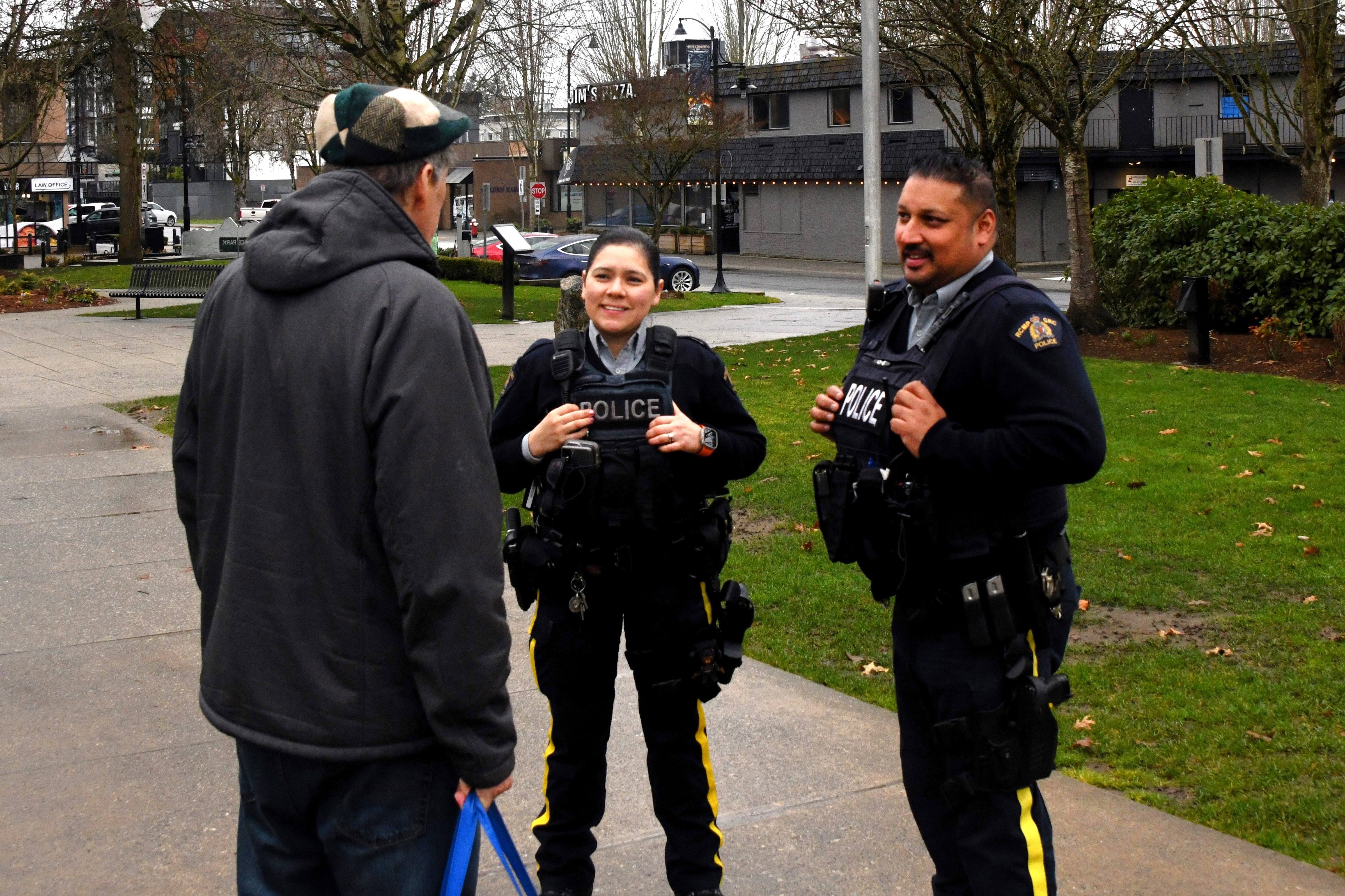 *photo courtesy of Downtown Maple Ridge Business Improvement Association (DMRBIA)A typical day for the team may involve speaking with members of the community about their concerns, assisting in identifying missing persons, interacting with vulnerable people, liaising with bylaws and CSOs, and finding stolen property and returning it to the rightful owner.