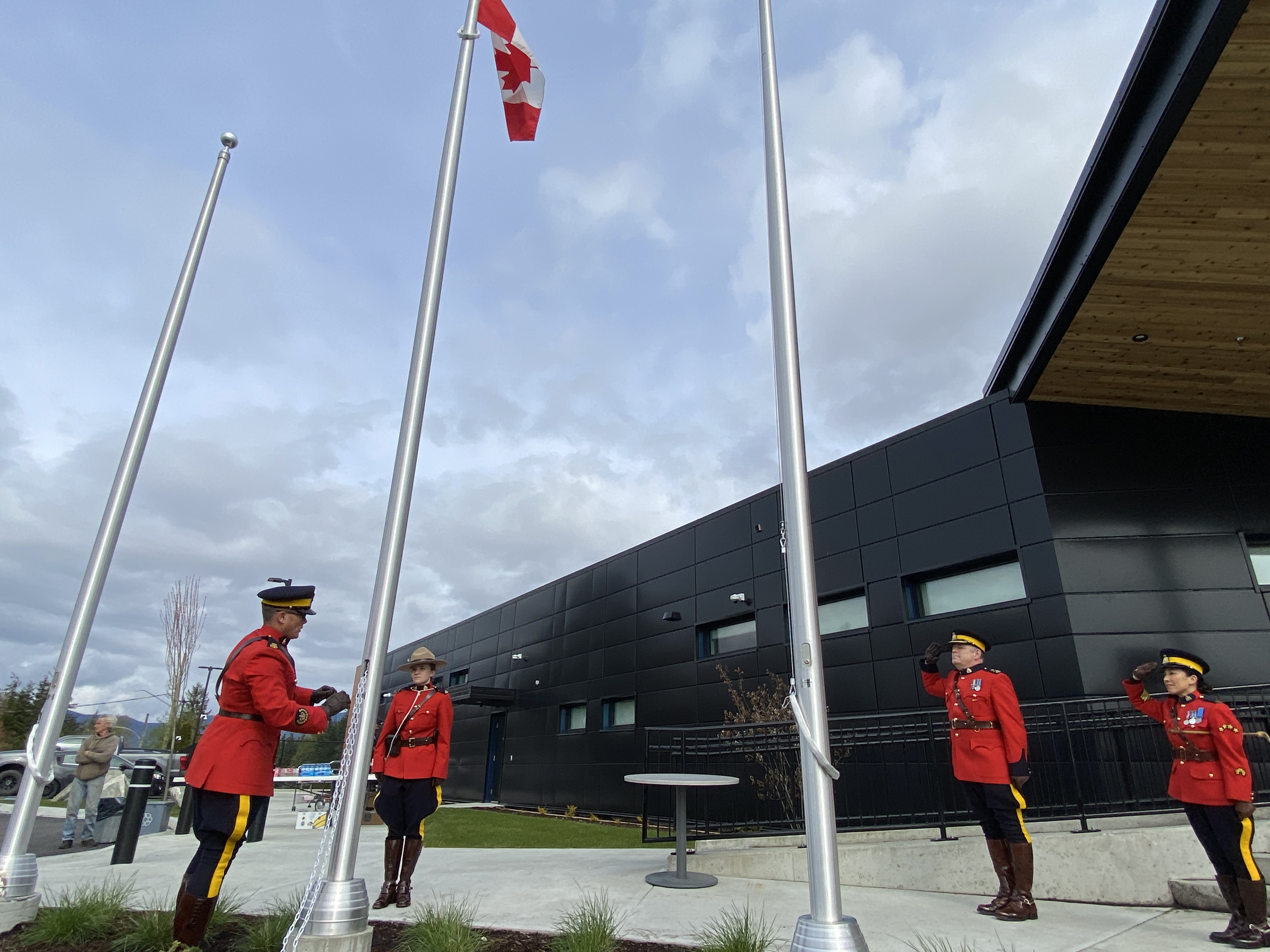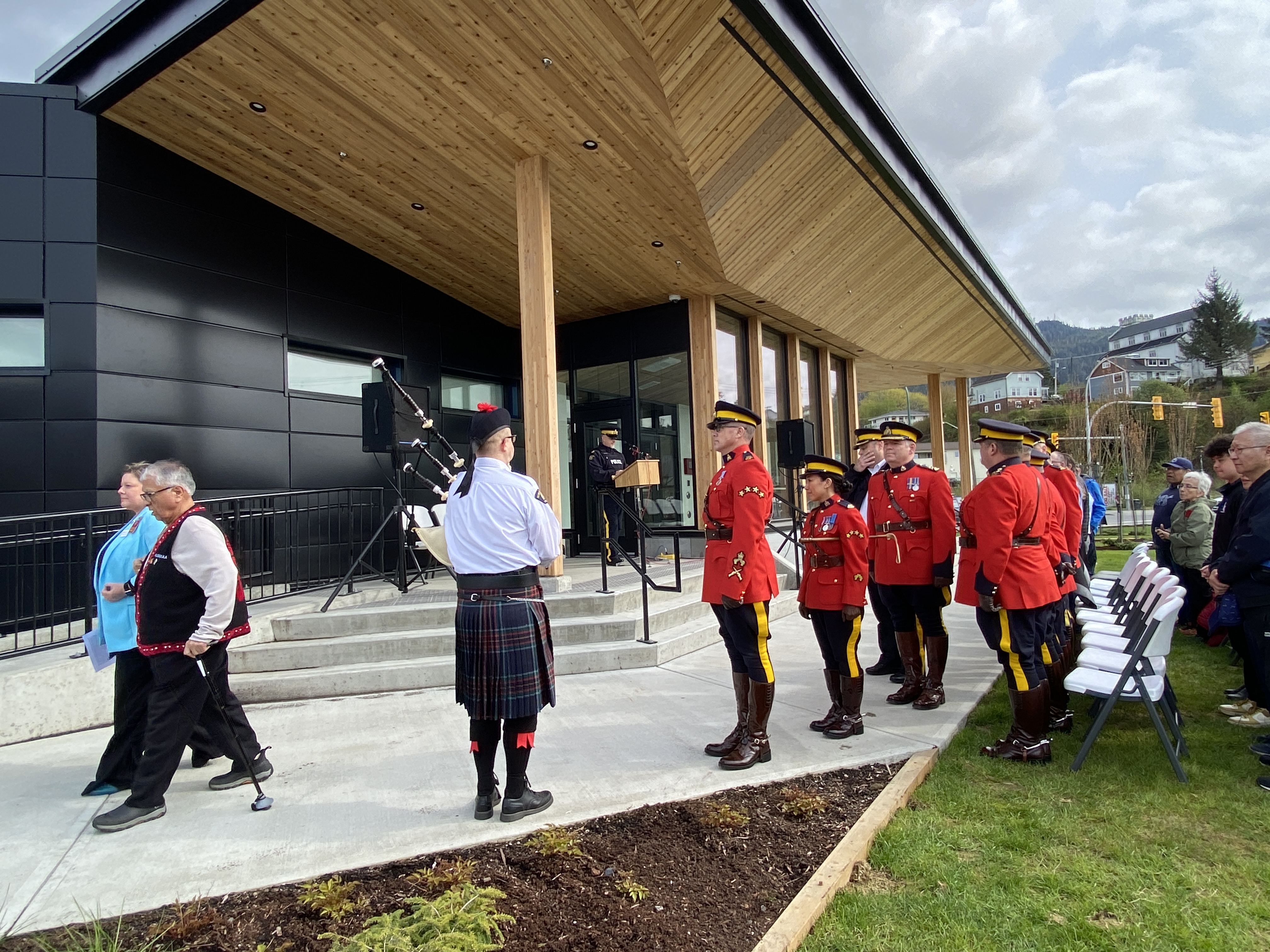 A grand opening ceremony was held on Tuesday, April 29, 2025, hosted by the local RCMP and the City of Prince Rupert. To kick off the monumental event, a traditional Flag Raising Ceremony was held to pay tribute to those who served the community in the past and present.