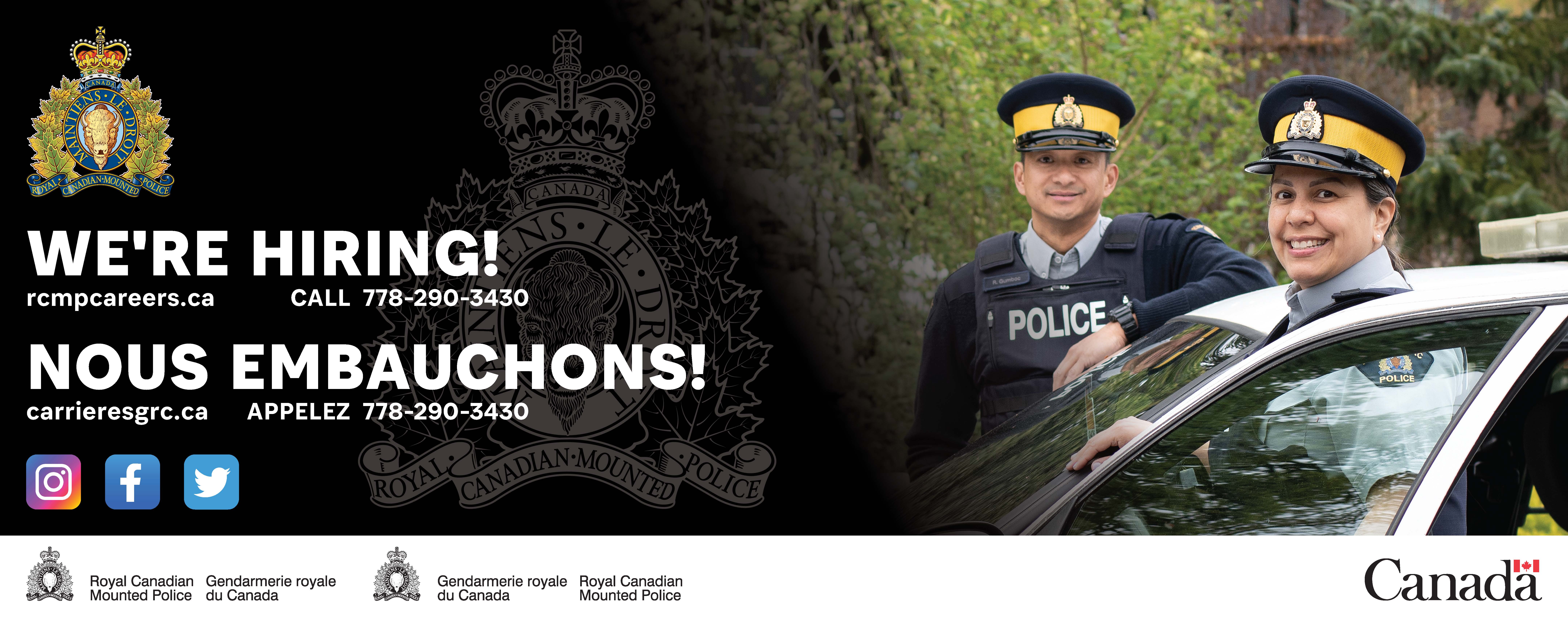 This general information session is for people interested in a career with the RCMP and who want to stay within British Columbia. Attendees will have an opportunity to learn about the application process, police academy training (Depot), hear first-hand accounts from Coquitlam RCMP and BC RCMP officers and ask questions.